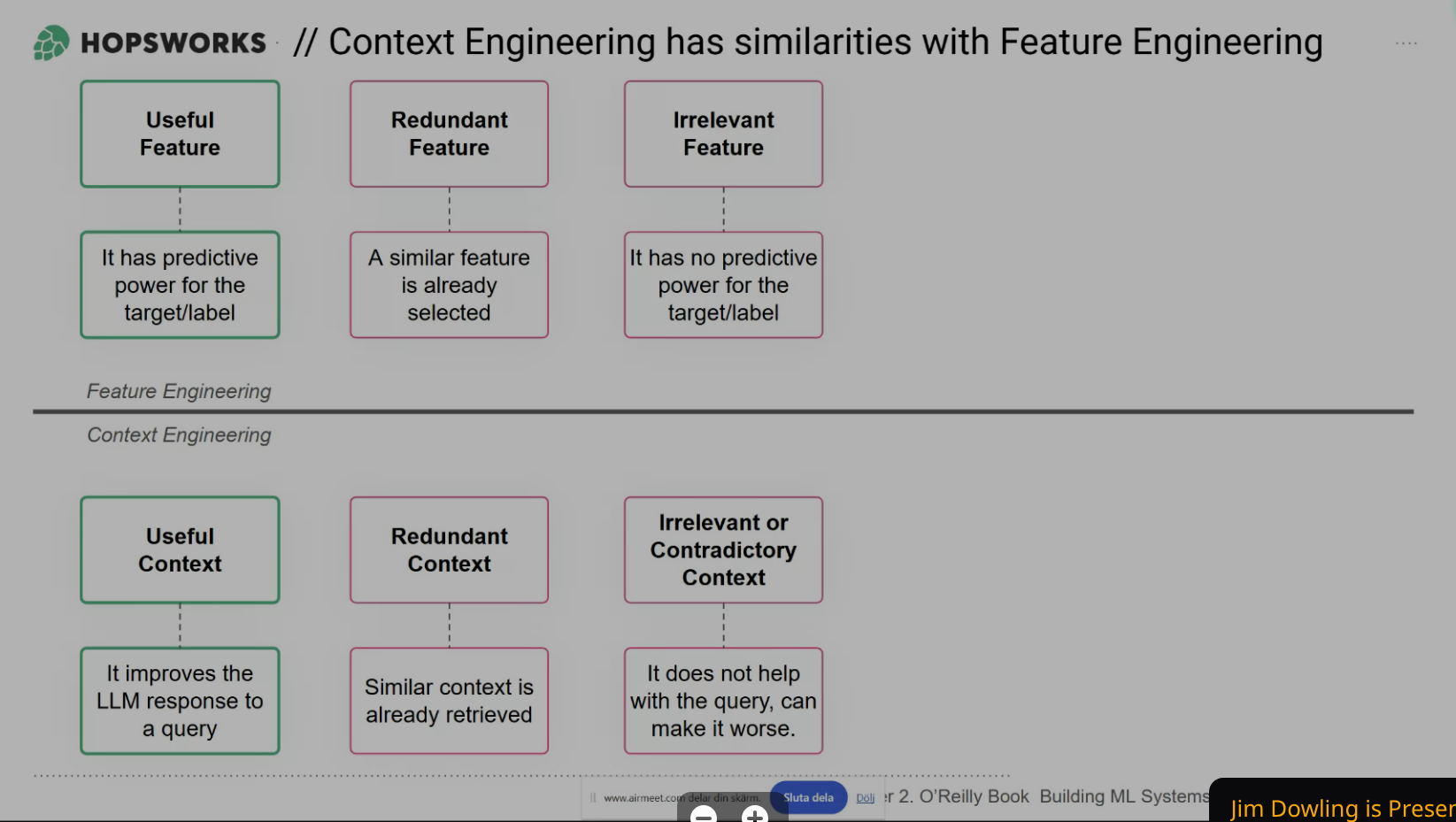 In this talk, we will introduce techniques for selection, preprocessing, and compression of context data, taking inspiration from the tried and tested techniques used for feature engineering for ML. What goes around, comes around.