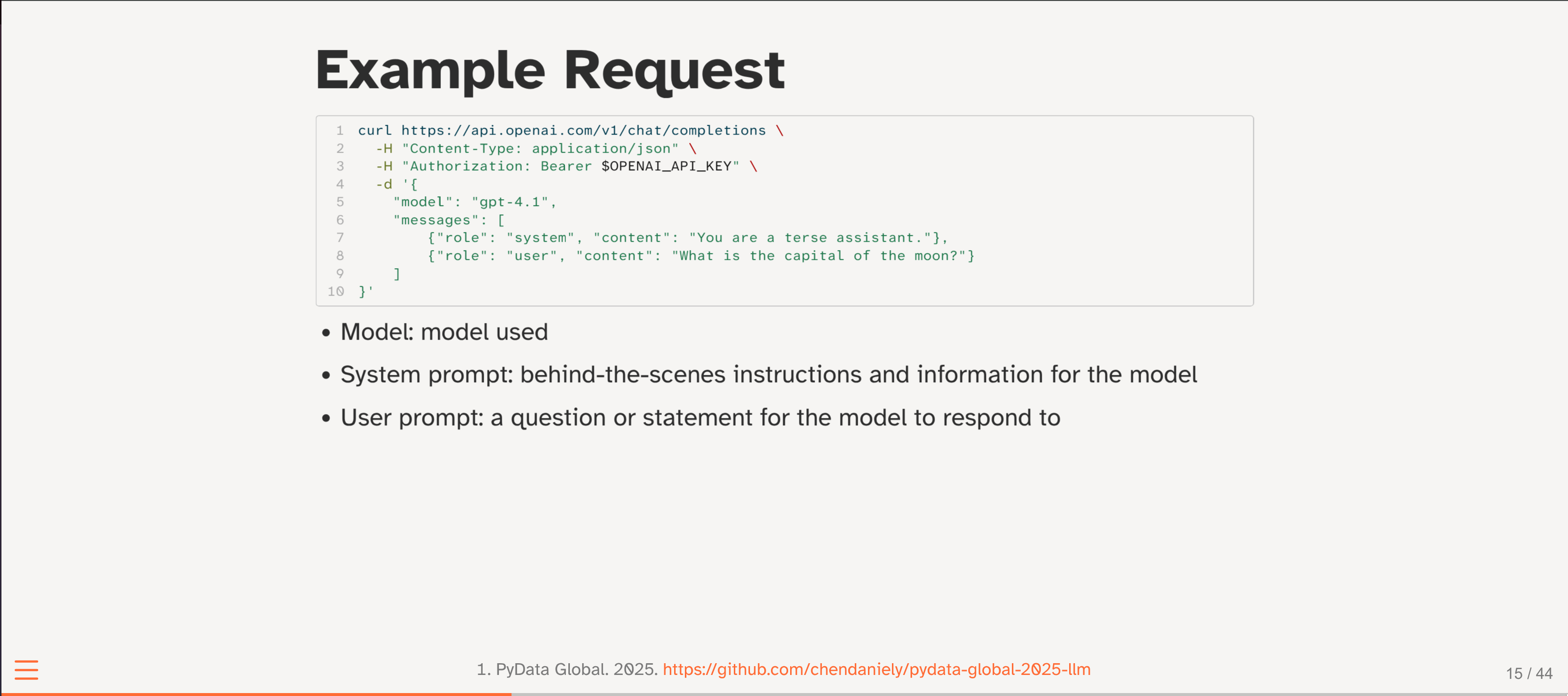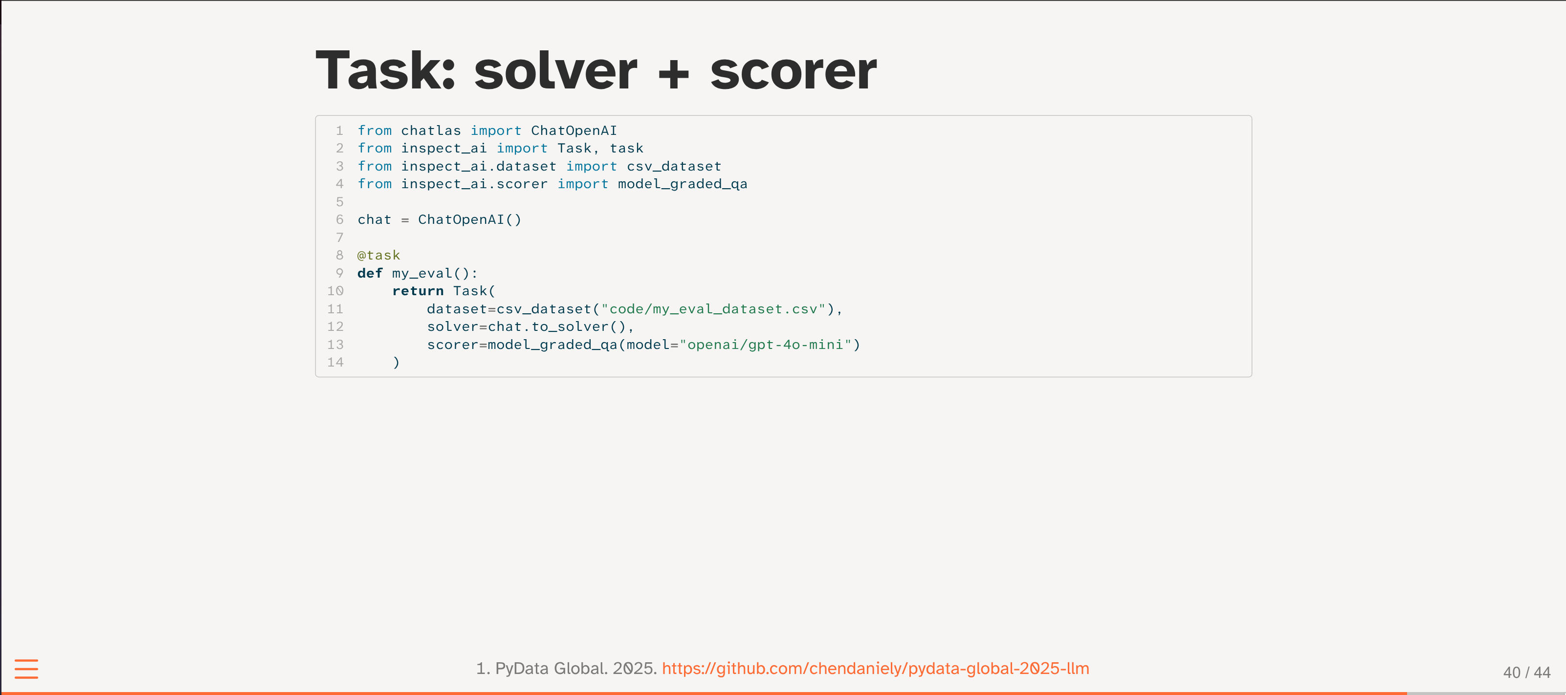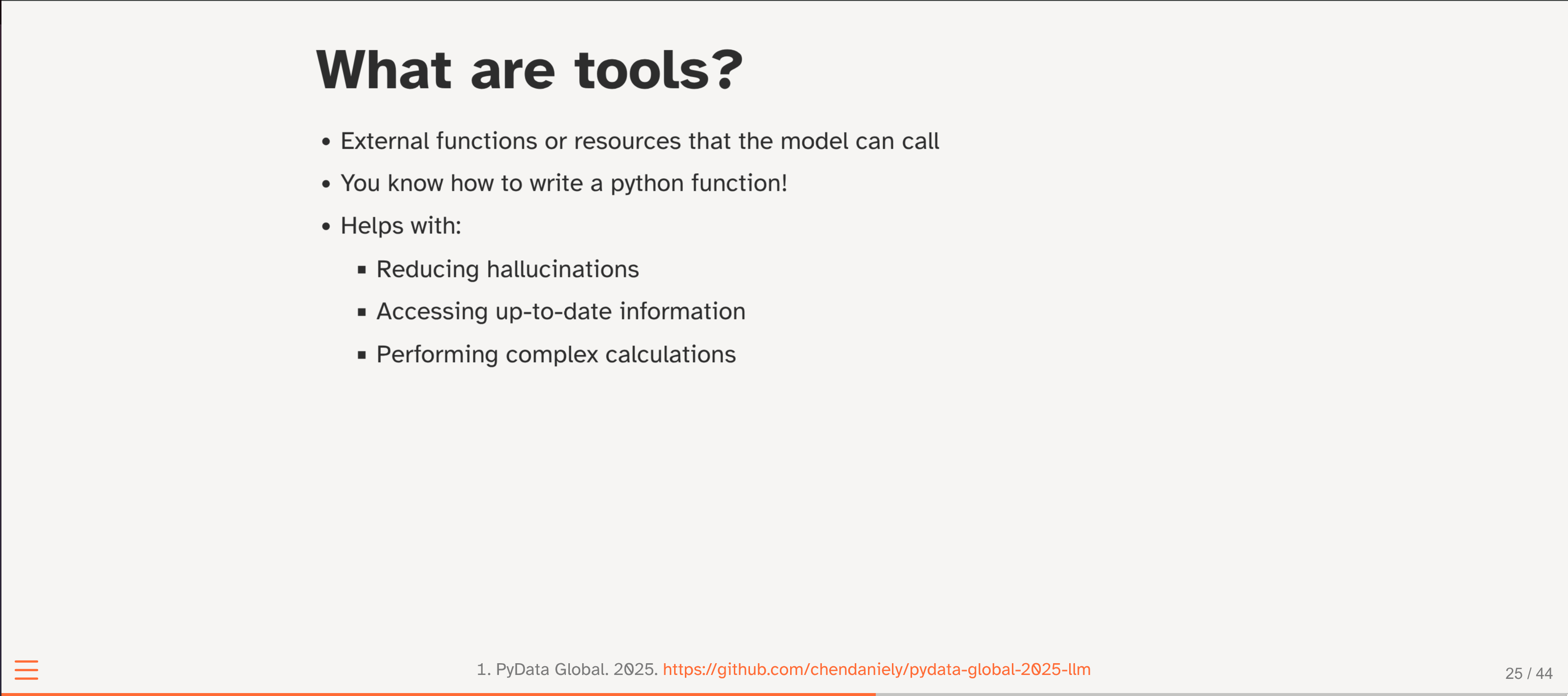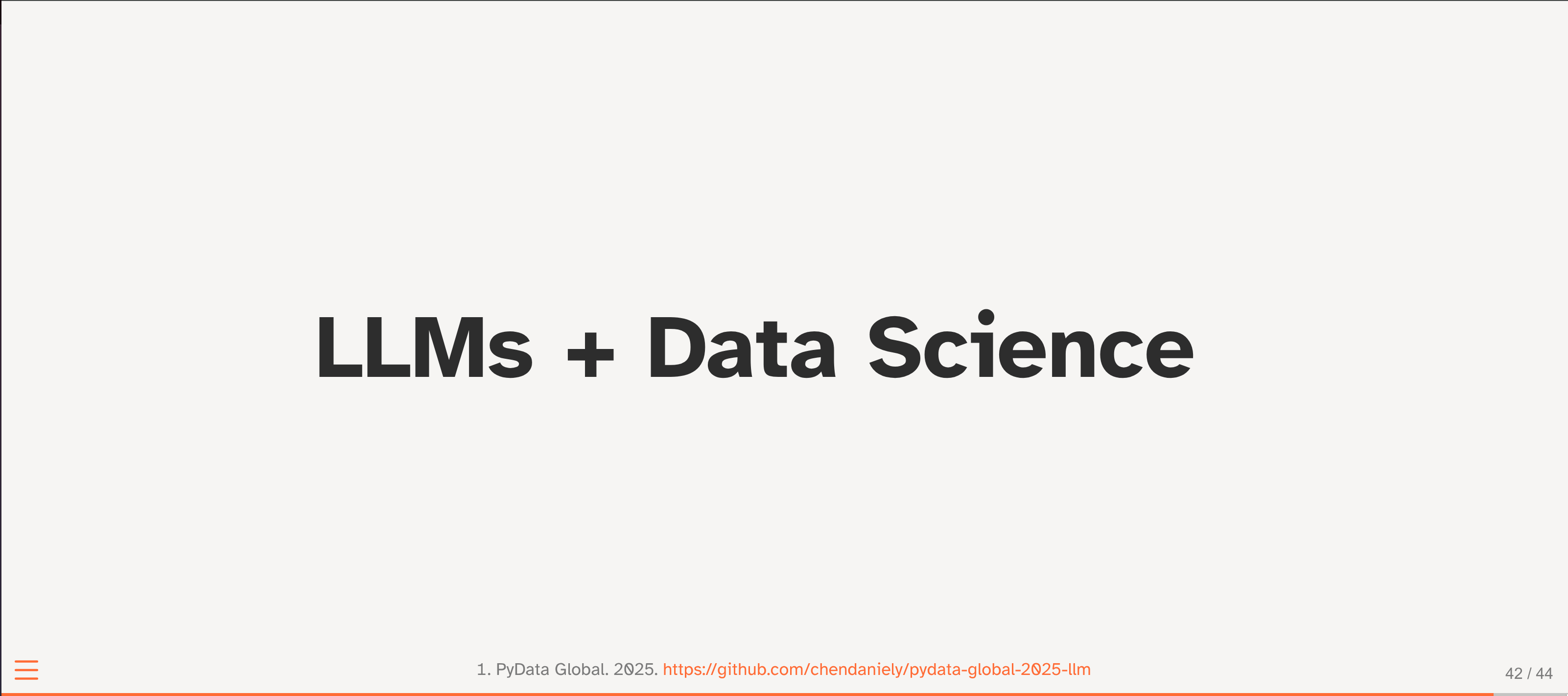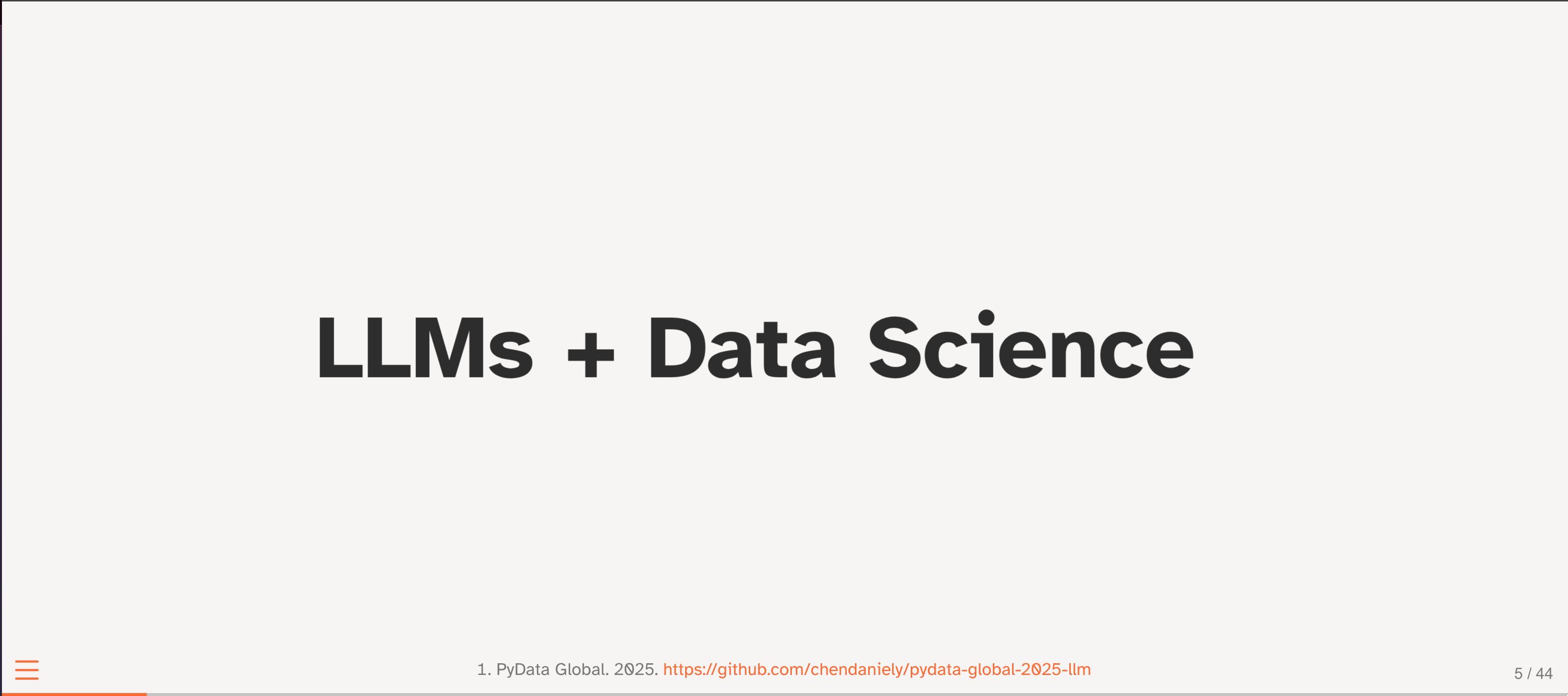 20-25: demo + example of putting everything together and how we can create an LLM-powered data science product.