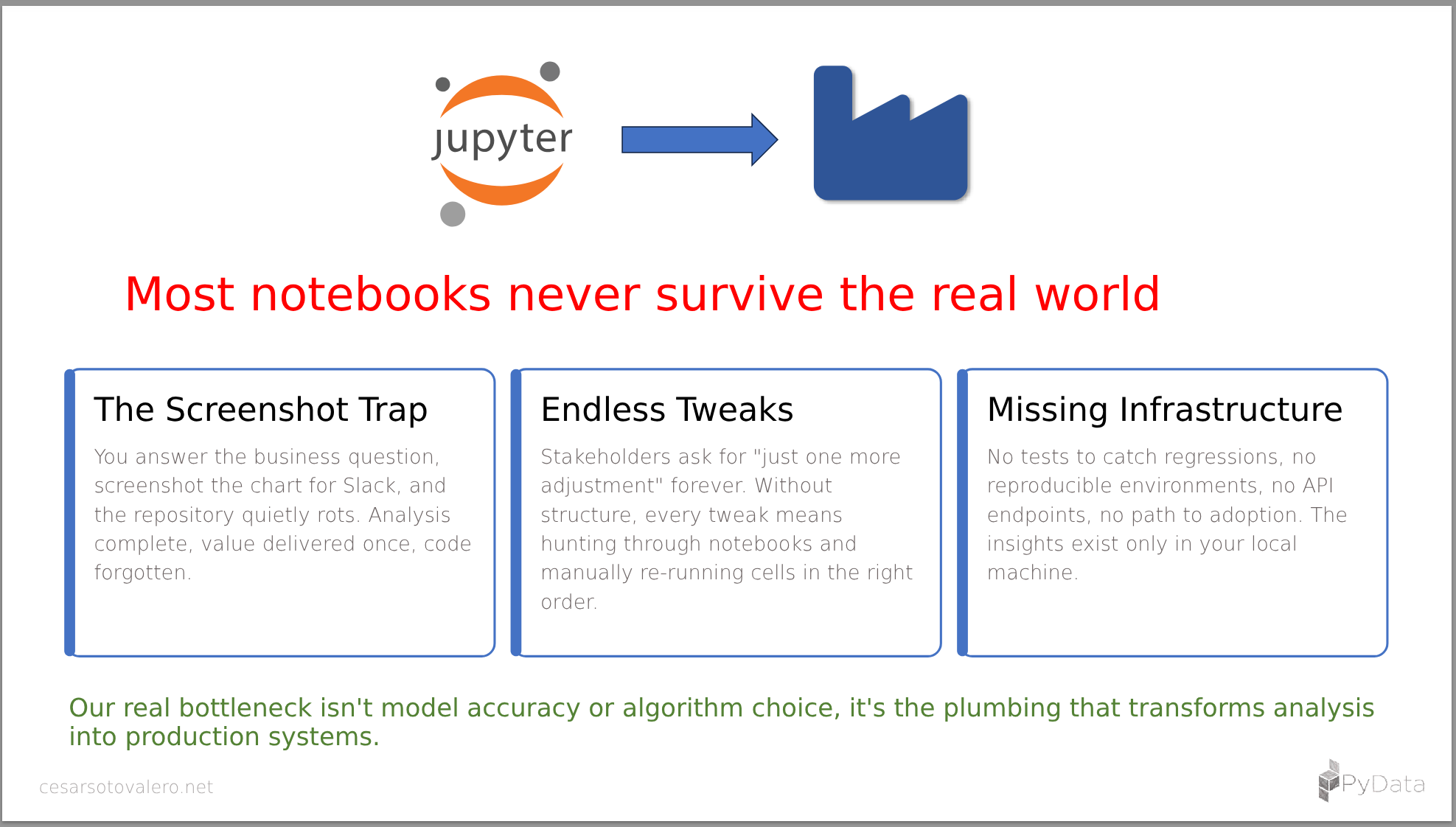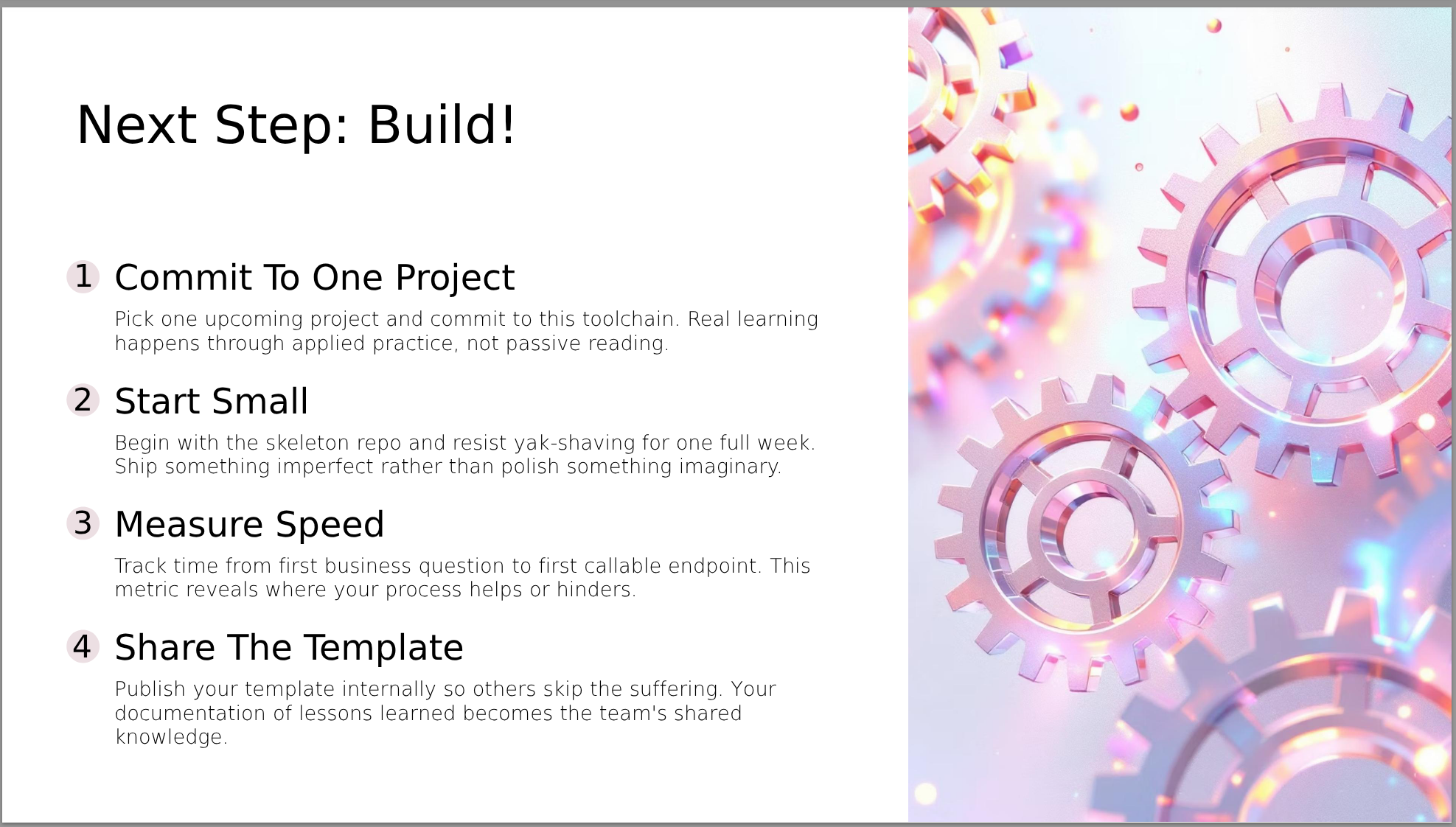 - The shortest path from notebook to usable component is a repeatable, well-lit toolchain with the right structure.