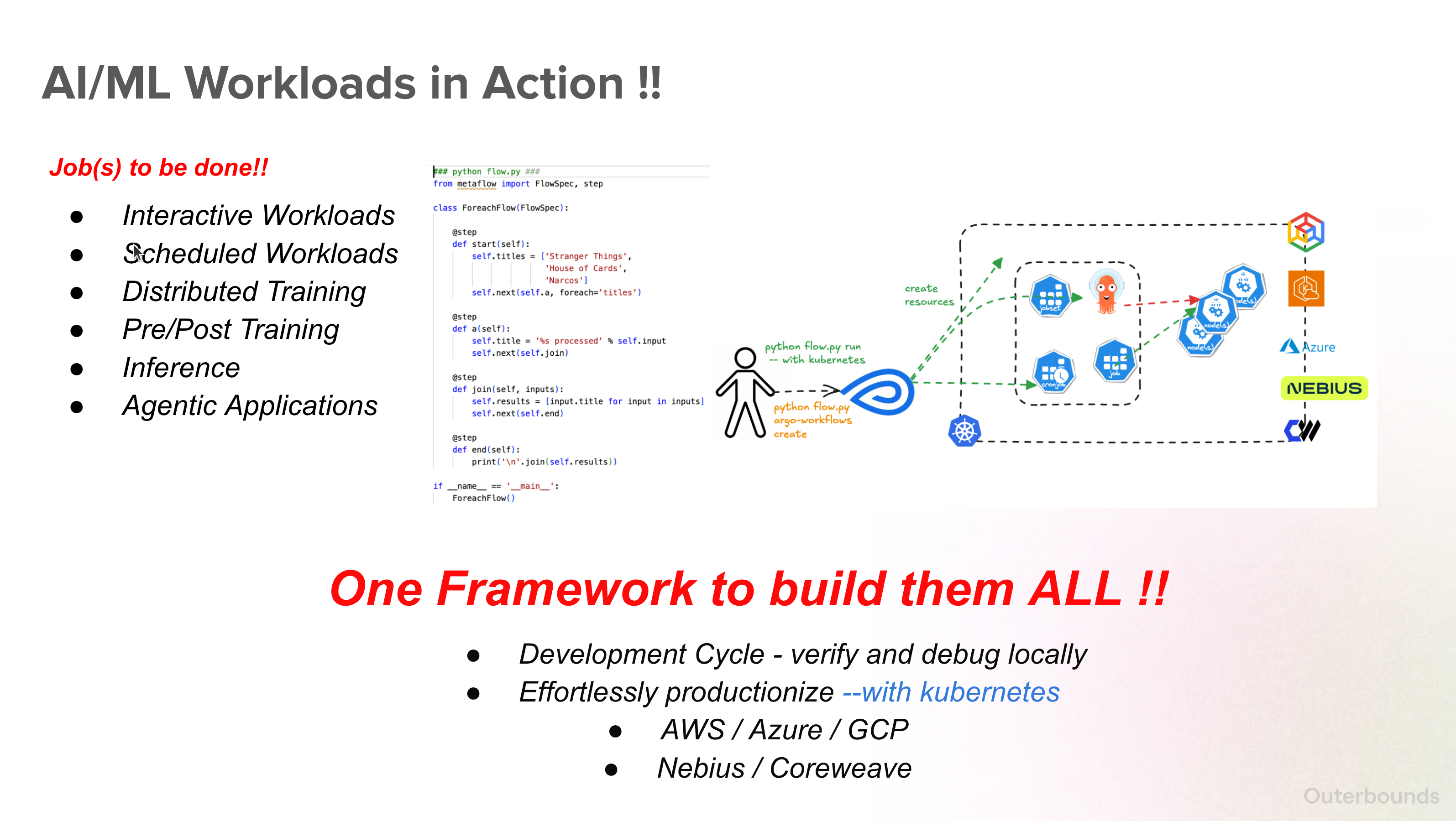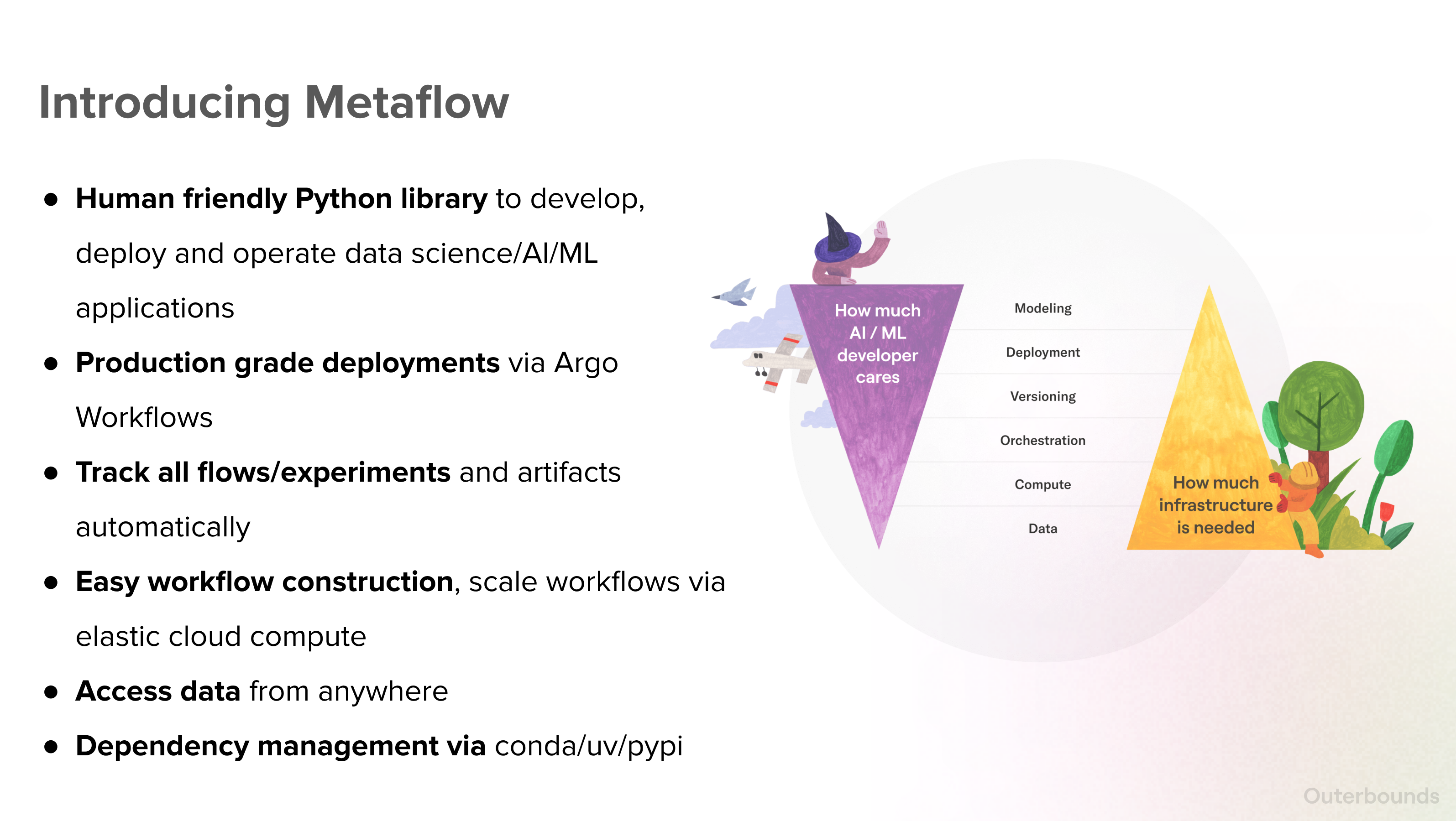 He is currently focused on building a frictionless Machine Learning Platform at Outerbounds, where our mission is to let data scientists and ML engineers stay focused on AI/ML development—while we manage the infrastructure that powers it.