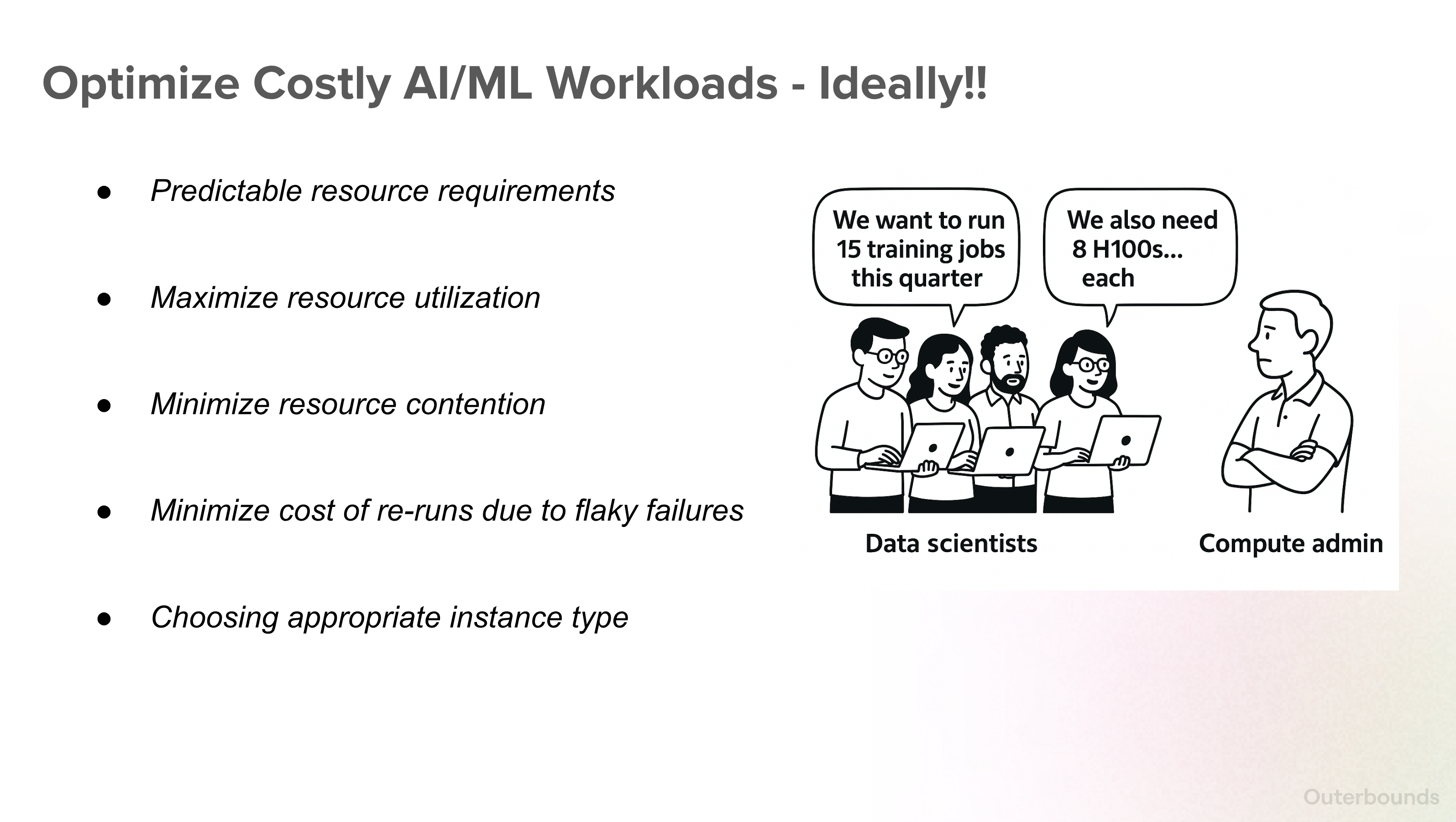 This talk will outline an approach to systematically monitor, inspect and analyze AI/ML workloads’ properties like runtime, resource demand/utilization and cost attribution tags . By implementing granular inspection across multi-player teams and projects, organizations can gain actionable insights into resource bottlenecks, identify opportunities for cost savings, and enable AI/ML platform engineers to directly attribute infrastructure costs to specific workloads.