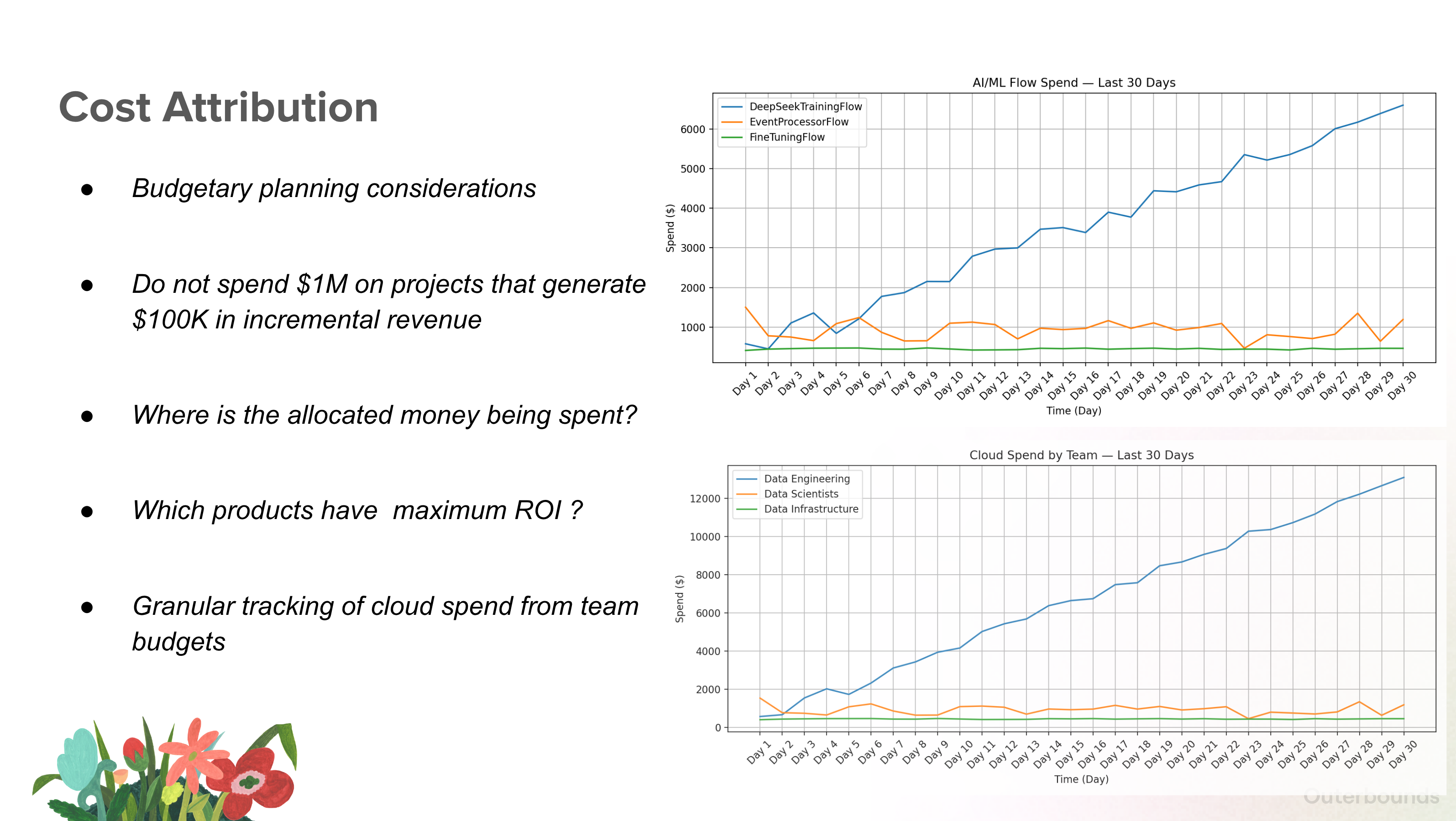 Through our work on Metaflow, we will showcase how we built a comprehensive framework for transparent usage reporting, cost attribution, performance optimization, and strategic planning for future AI/ML initiatives. Metaflow is a human centric python library that enables seamless scaling and management of AI/ML projects.