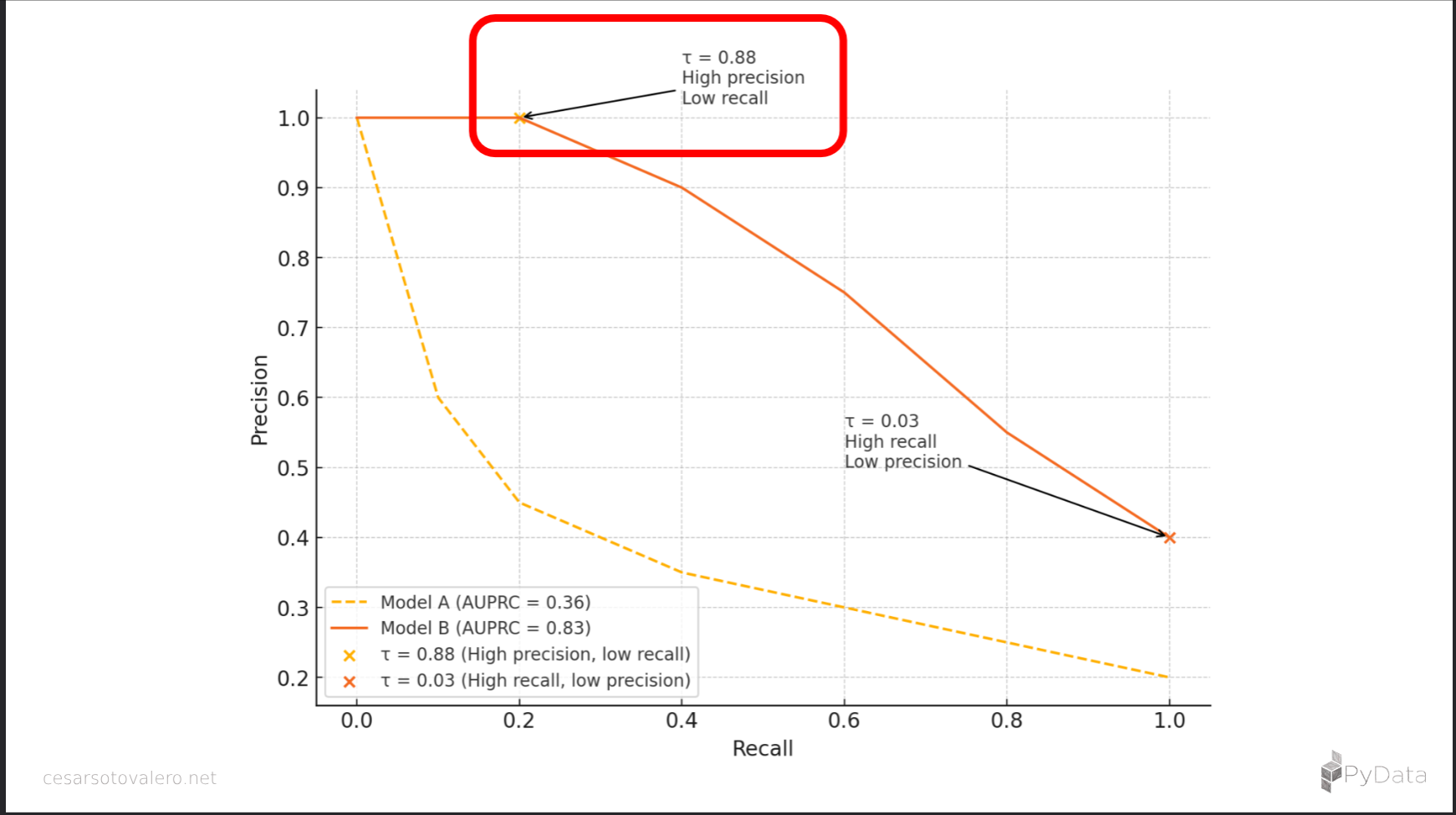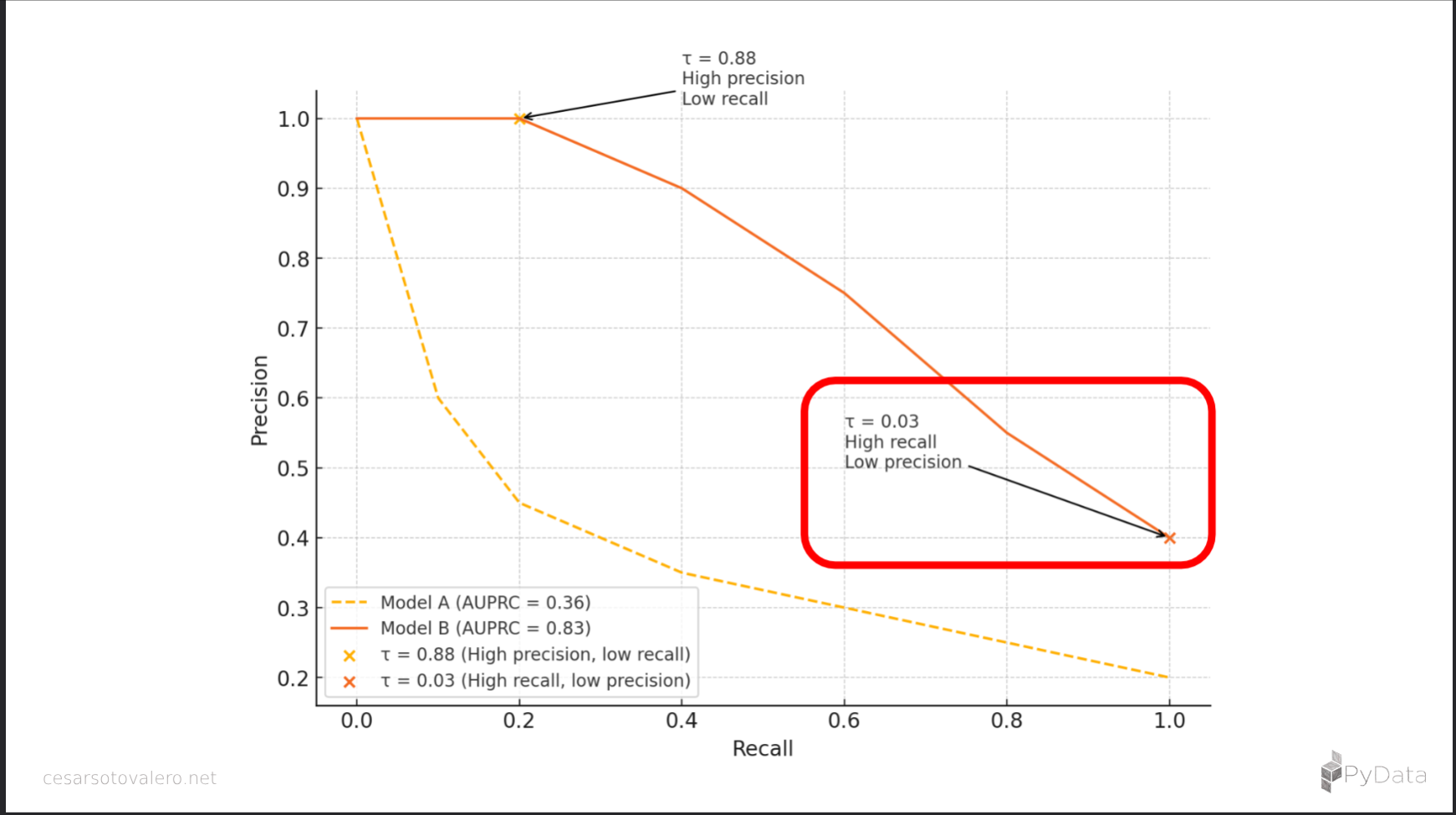 Metrics that matter: Precision and recall, AUC‑PR vs ROC, cost‑weighted utility, calibration for decisions.