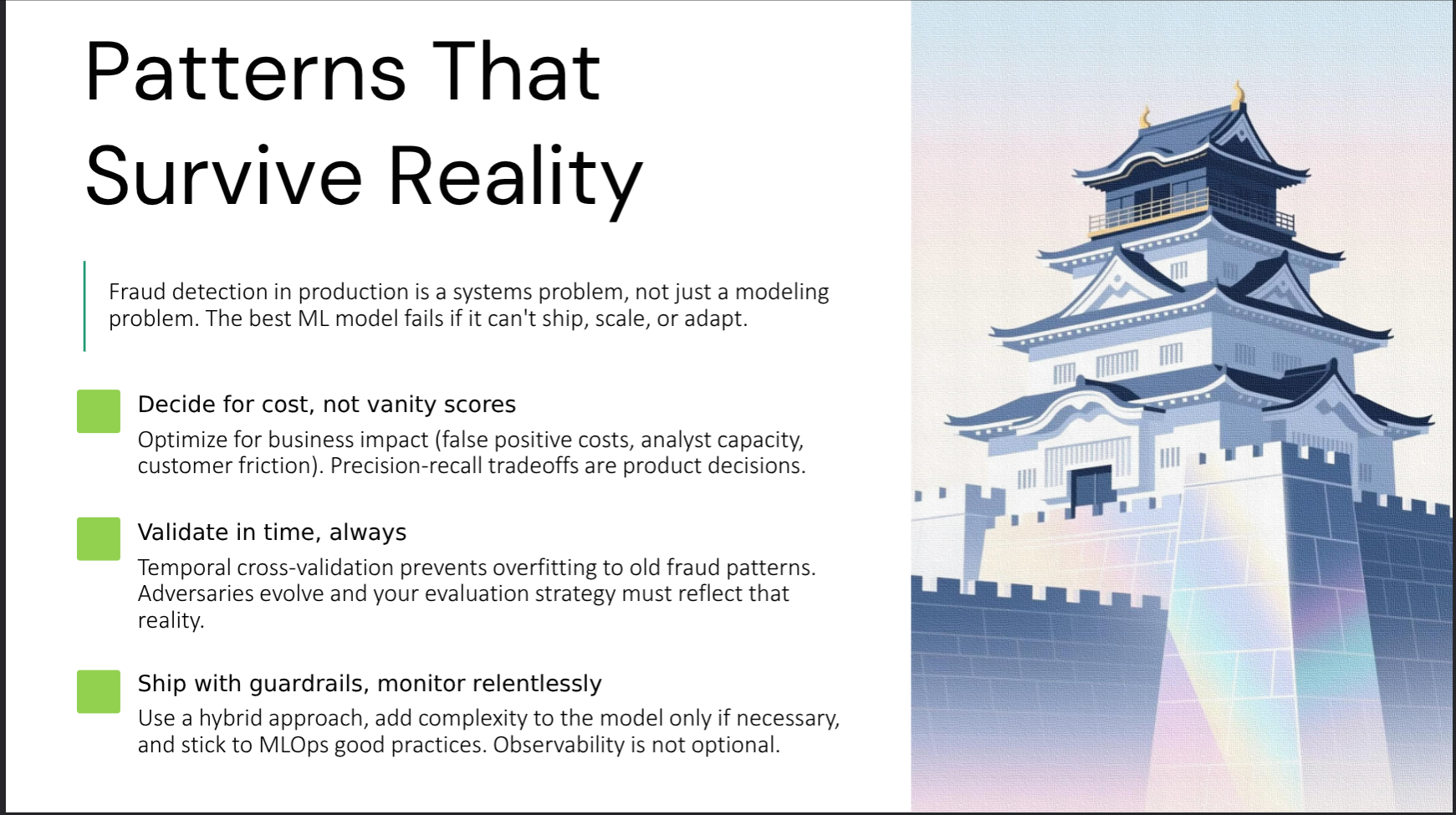 This talk distills a production‑tested path for real‑time financial fraud detection in Python (inc. choosing the right objective, validating in time, and shipping with guardrails).