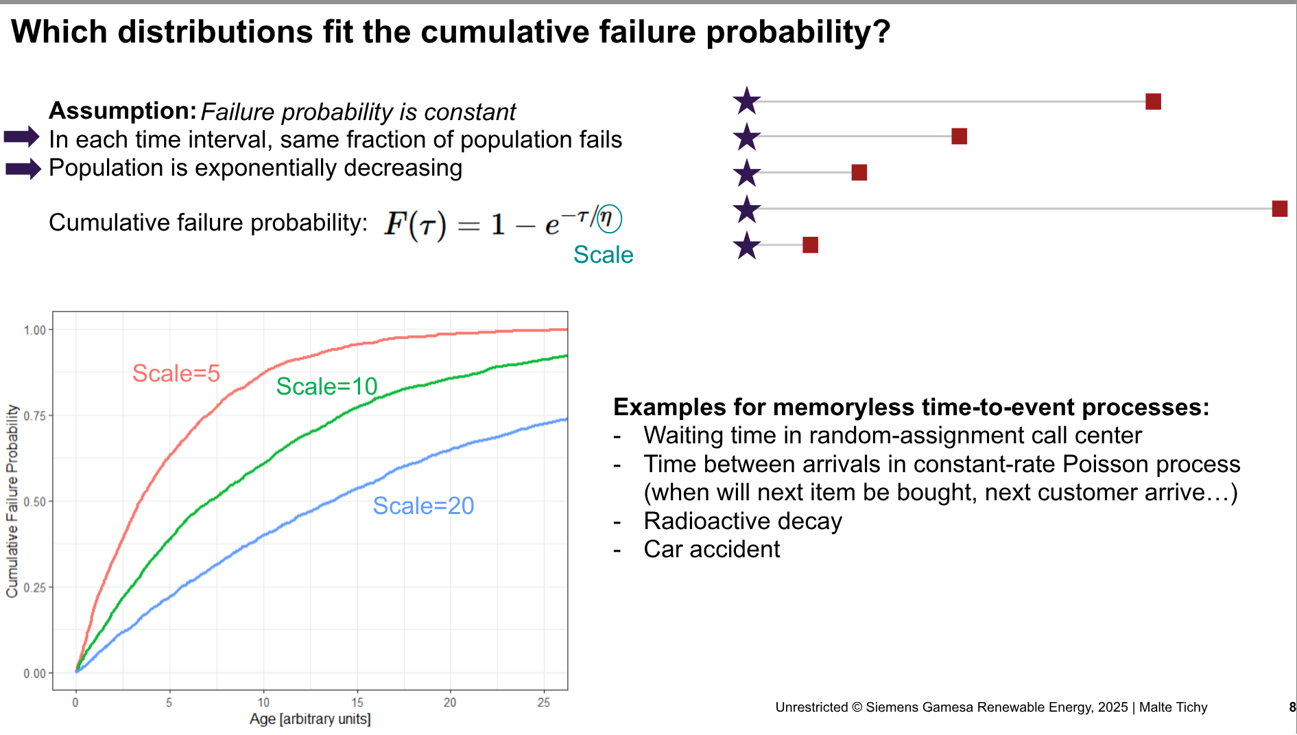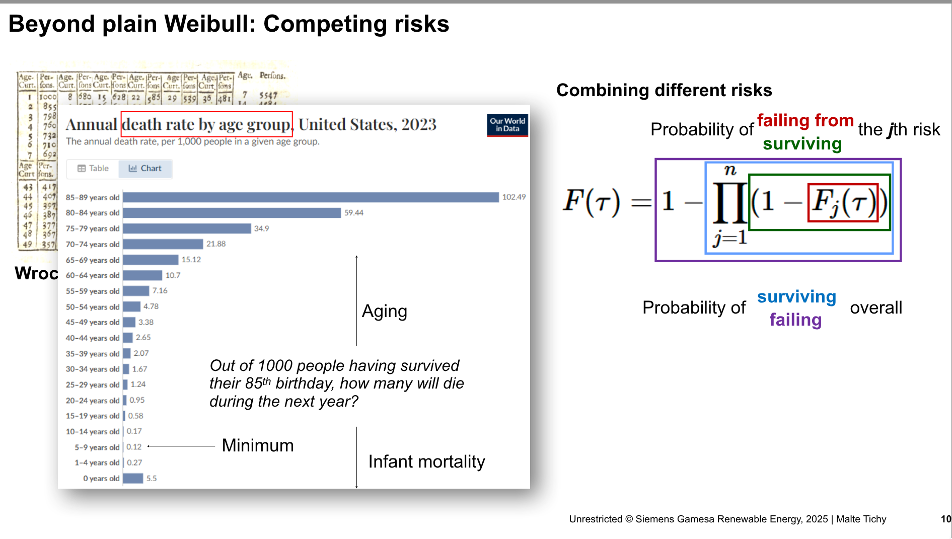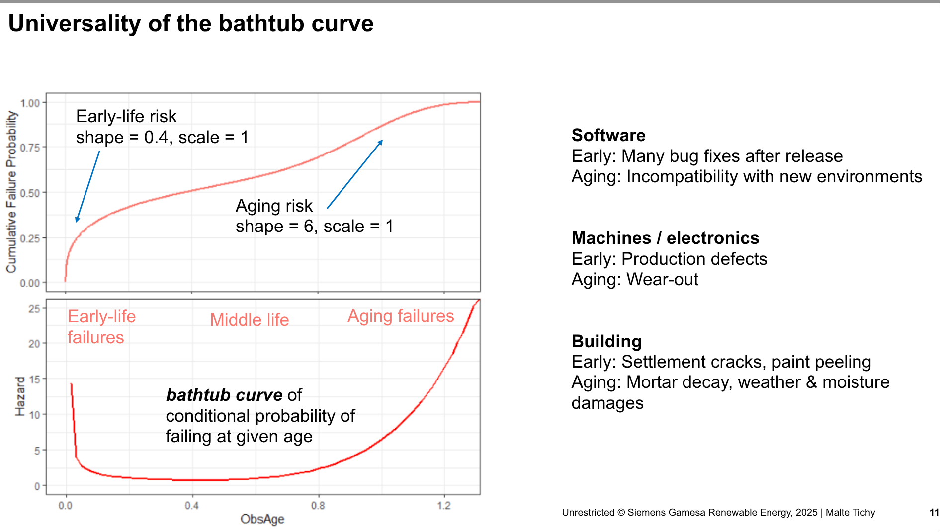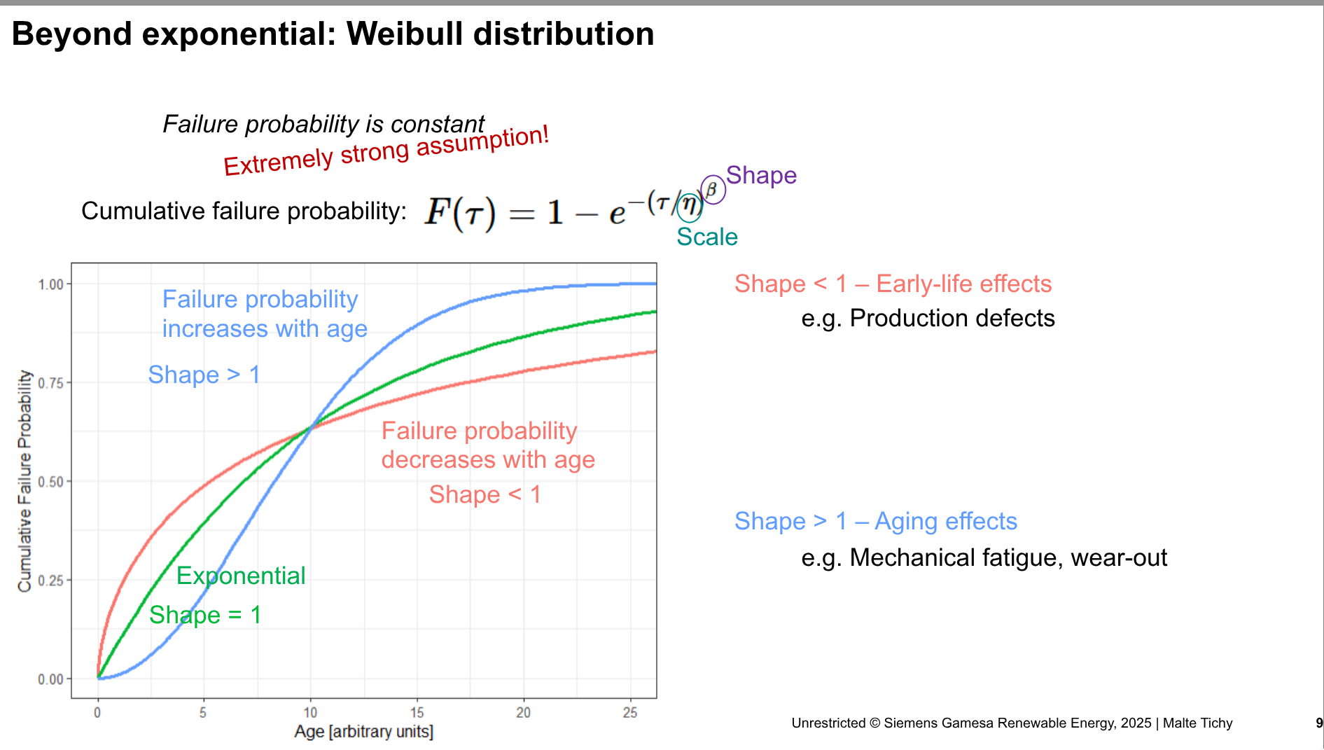 - The Weibull distribution as the working horse of survival analysis: How to model early failures, constant risks and wear-outs. [4 min]