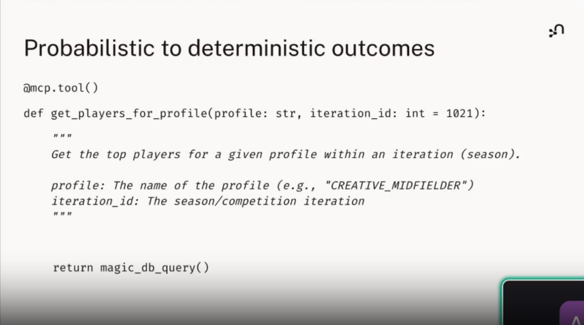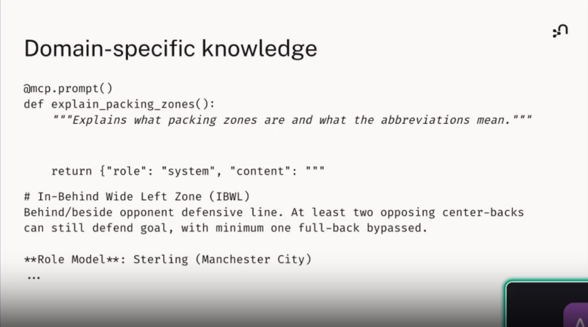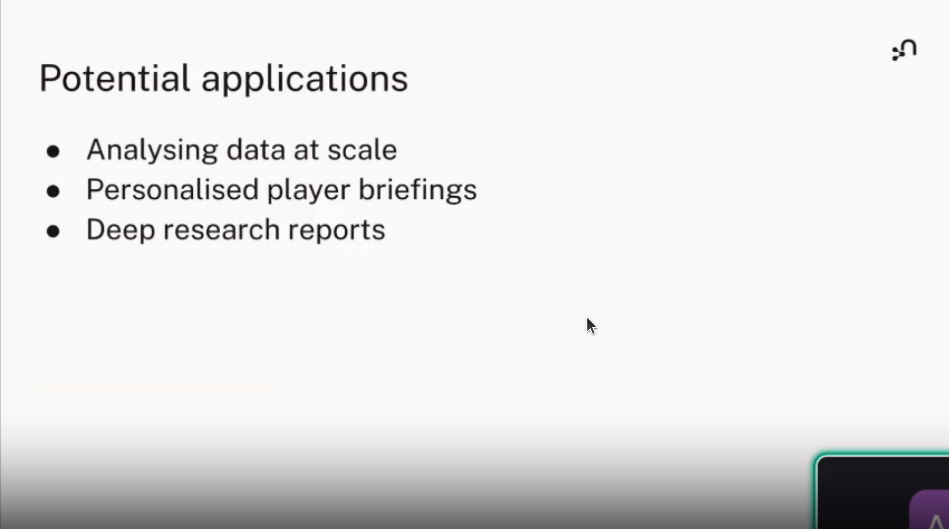 In this talk, I’ll share how I used Model Context Protocol (MCP) to turn Anthropic’s Claude Desktop into a football opposition analyst by providing access to team and player performance event data, and in turn lower the barriers so anyone can turn a sea of numbers into actions.