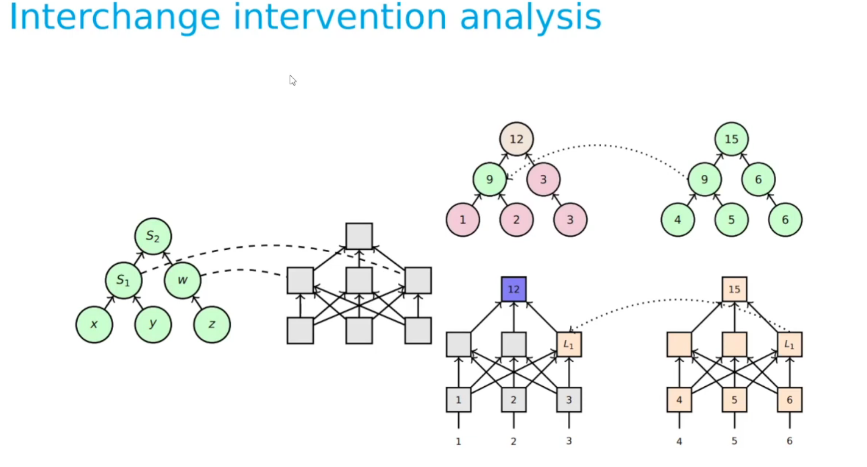 We can also use this idea to train a network to have a particular causal structure by interleaving the interventions during training. This is what Atticus Geiger calls interleaved intervention training.