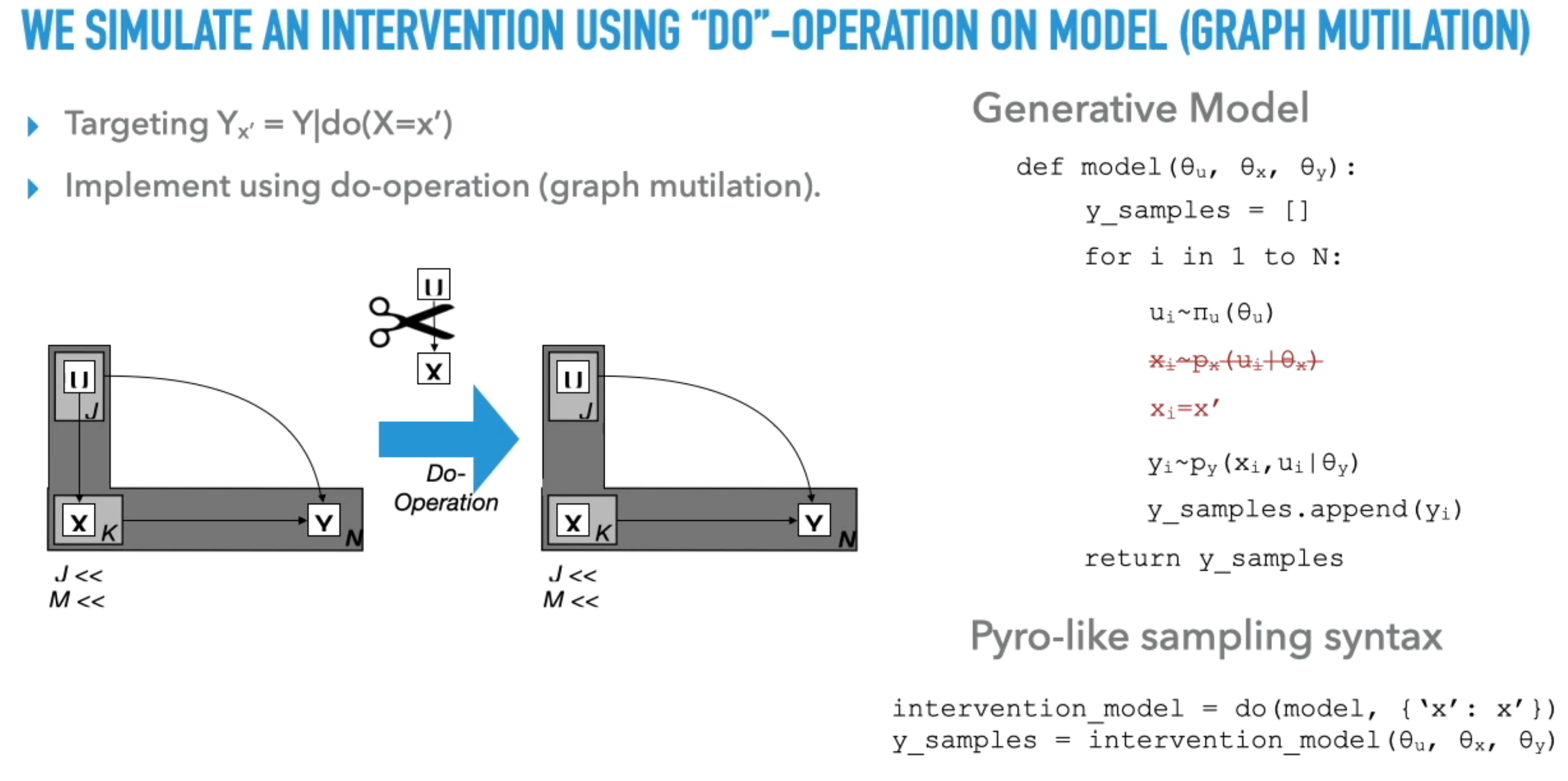 - Graph Mutilation and Program Transformation: The concept of “graph mutilation” is introduced as a tool for simulating interventions in causal directed graphical models, which can be viewed as a program transformation in probabilistic programming . This involves replacing an expression that samples a variable with one that assigns a constant value, breaking its dependence on prior expressions .