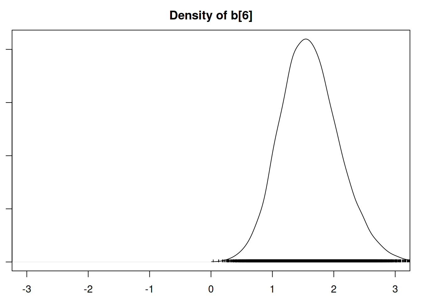 densplot(mod1_csim[,1:6], xlim=c(-3.0, 3.0))