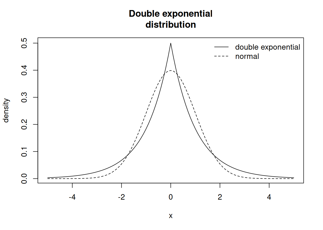 main="Double exponential\ndistribution") # double exponential distribution
