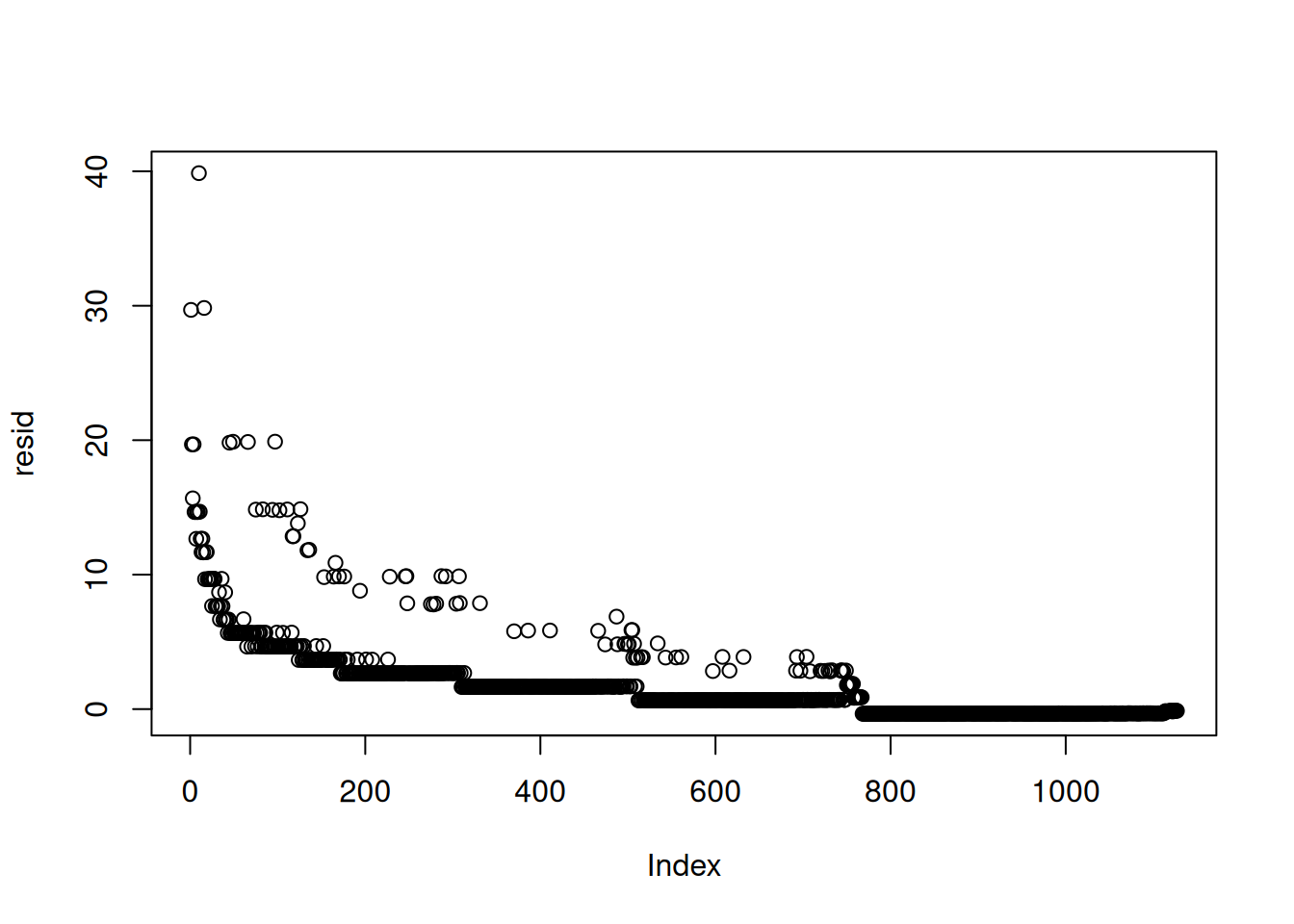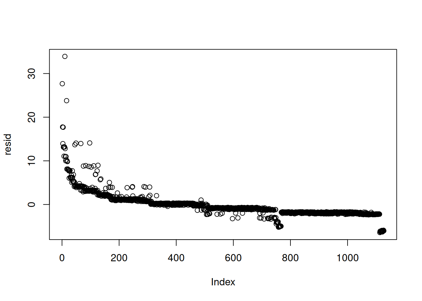 #| fig-cap: "Plot of residuals"