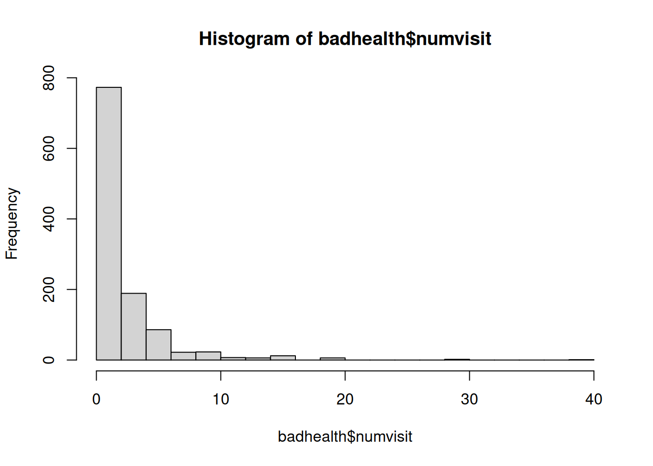 #| fig-cap: "Histogram of number of doctor visits"