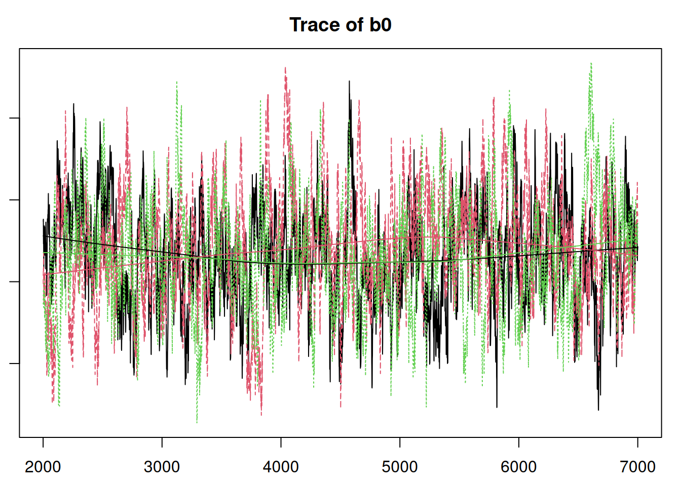 mod3_sim = coda.samples(model=mod3, variable.names=params3, n.iter=5e3) # <14>