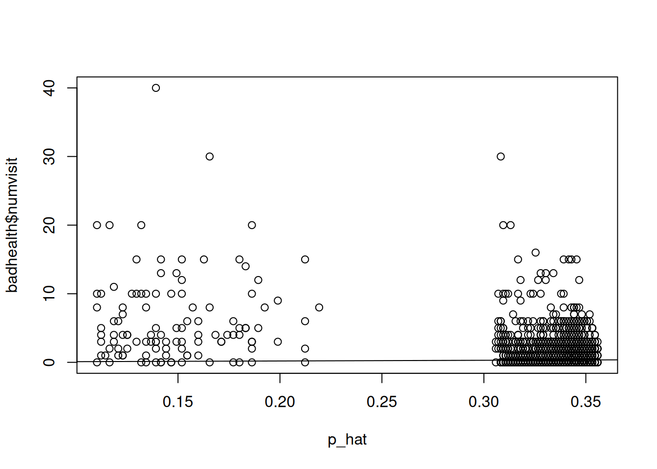 plot(p_hat, badhealth$numvisit)