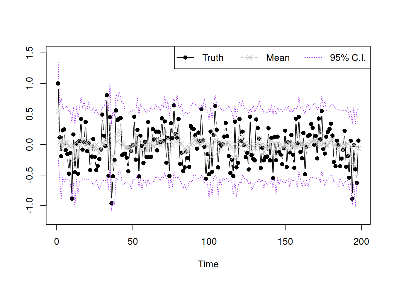 legend("topright",legend=c('Truth','Mean','95% C.I.'),lty=1:3,