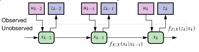 - Based on observations and model, we recursively update the state estimate
