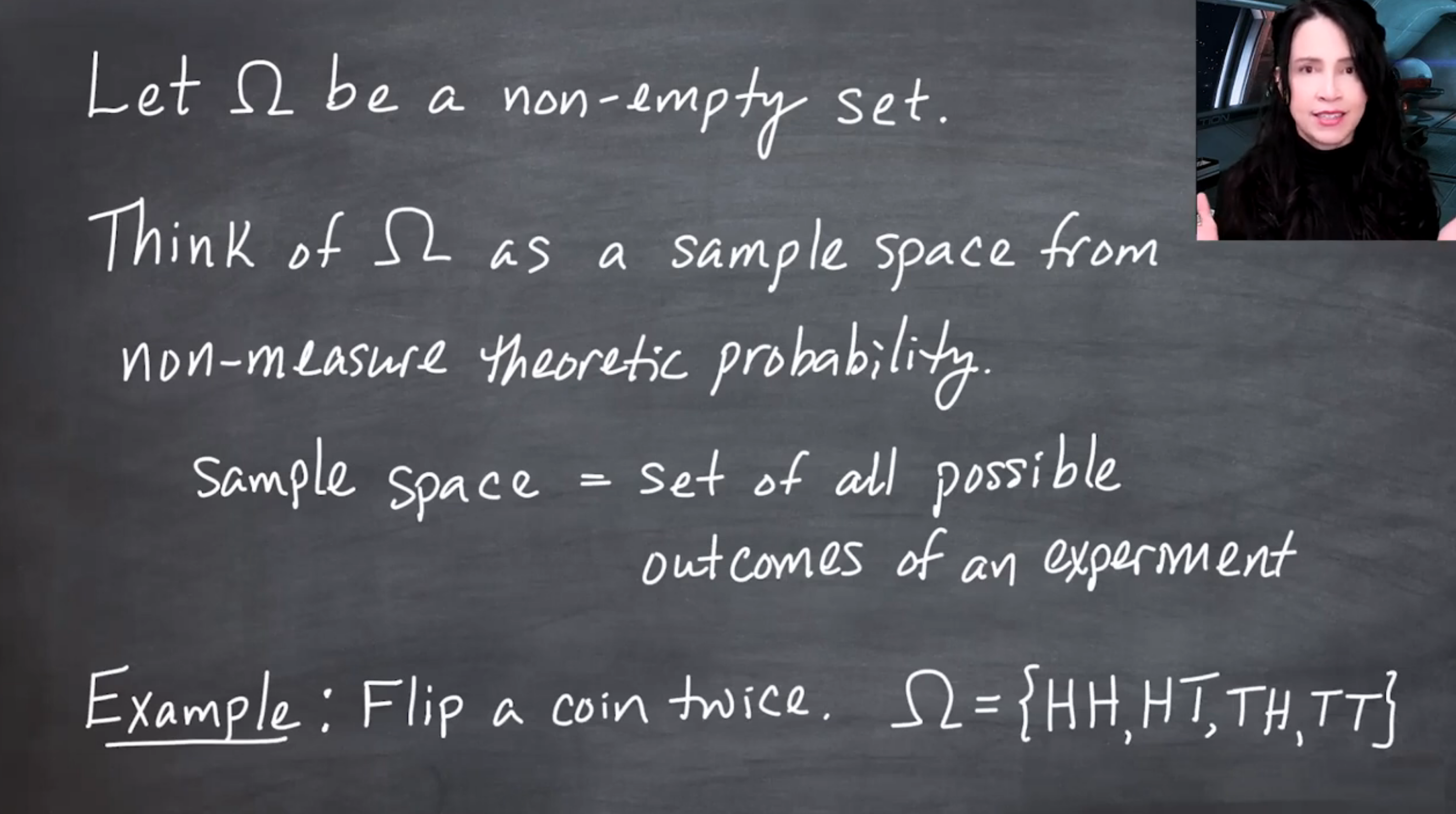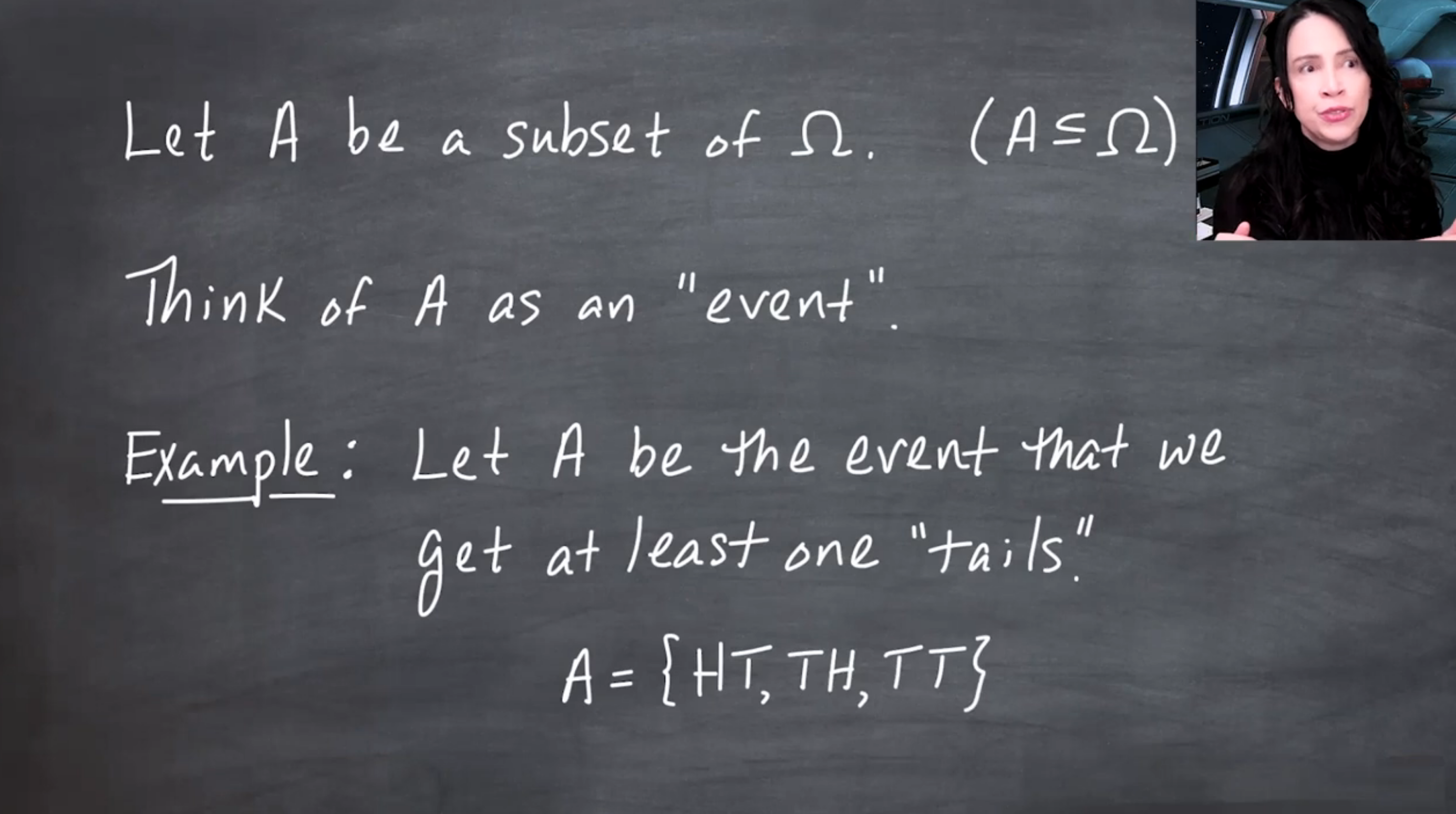 The set \Omega is any set, but we can think about it as an abstraction of our coin toss sample space.