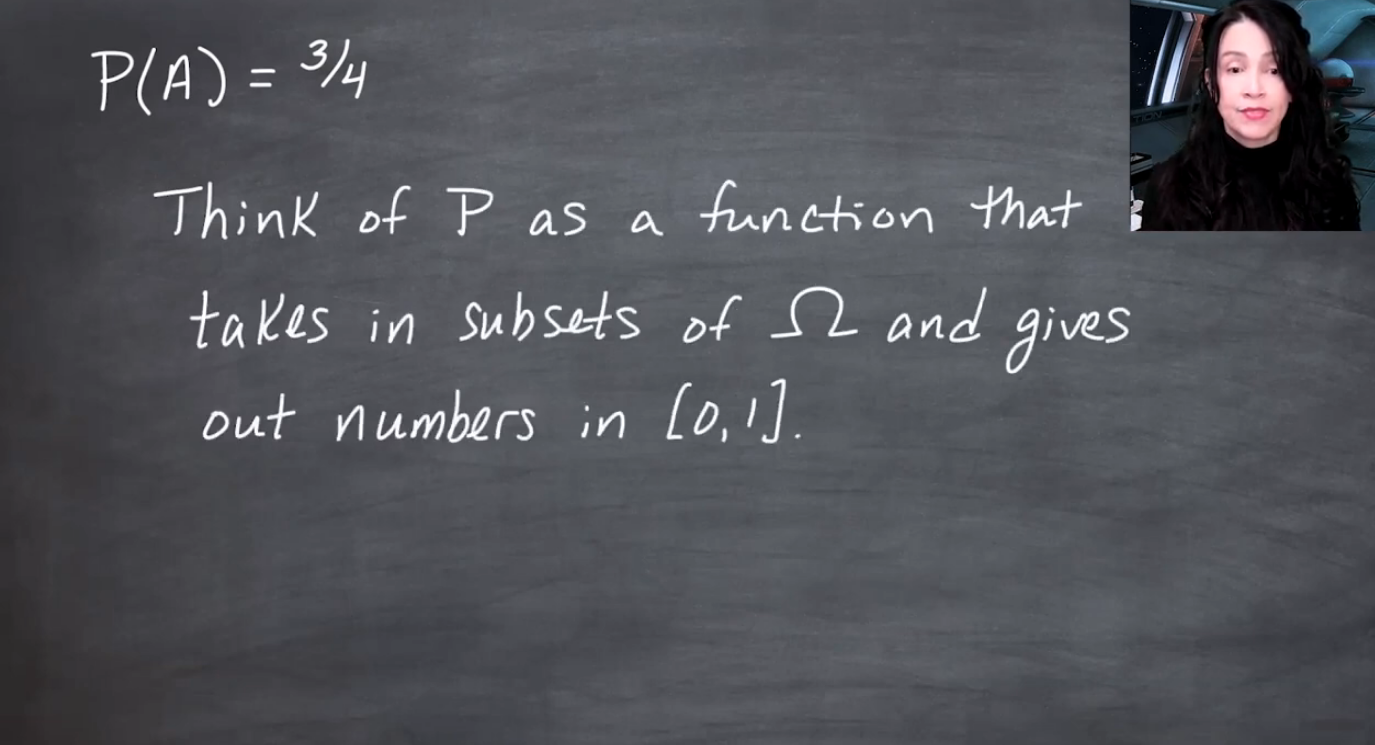 Think of \mathbb{P} as a function that assigns a number between 0 and 1 to each subset of \Omega.