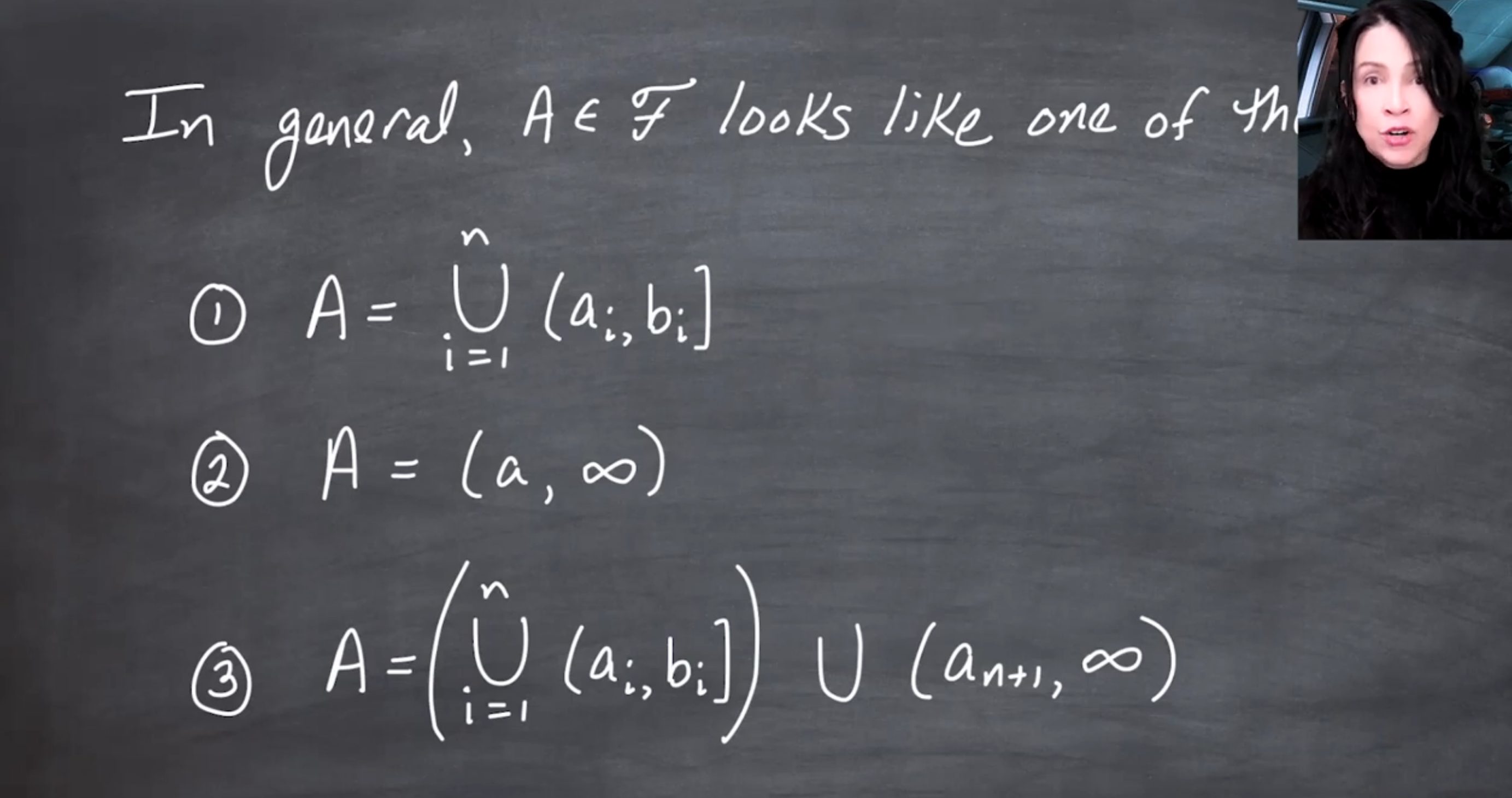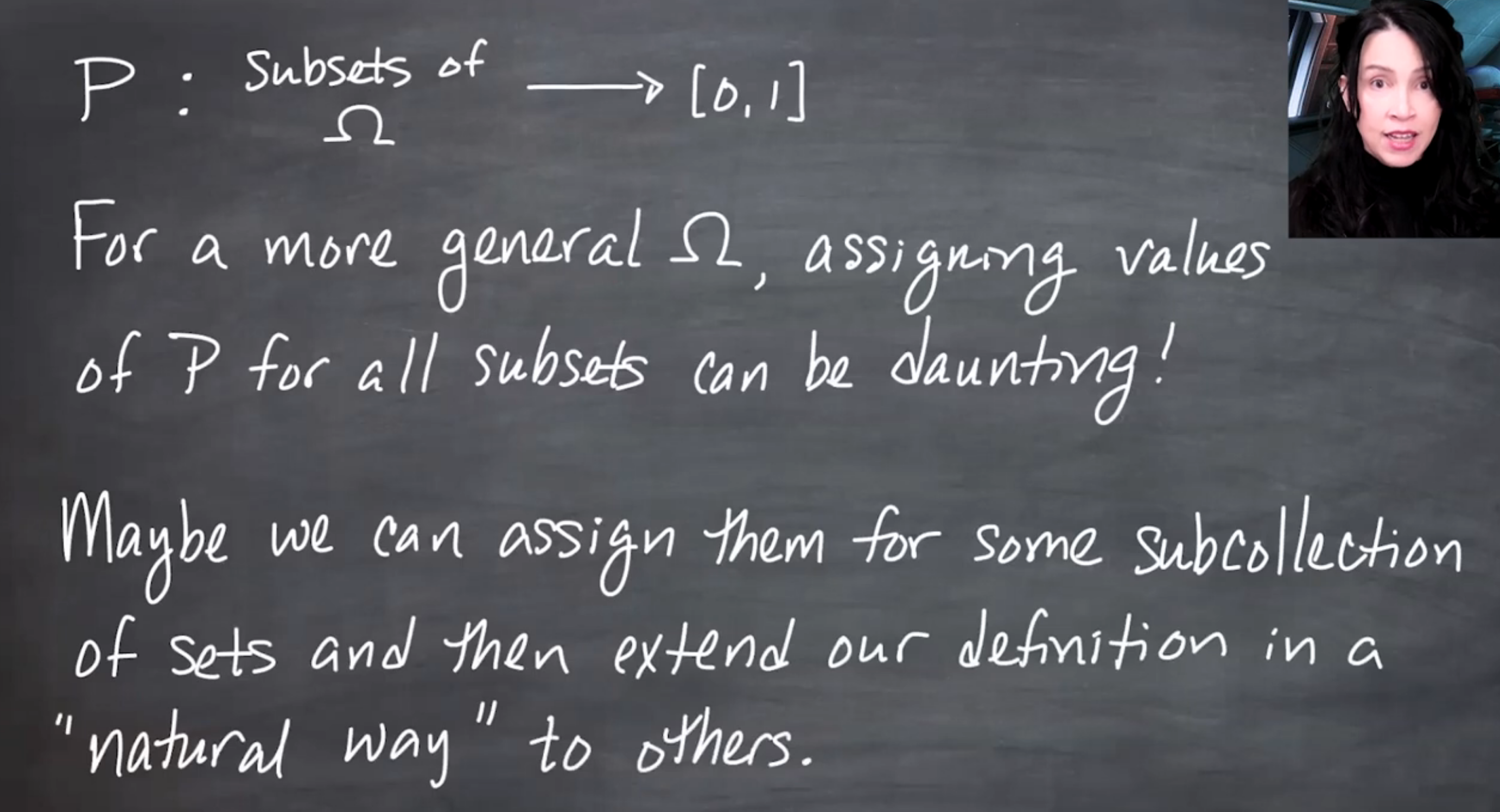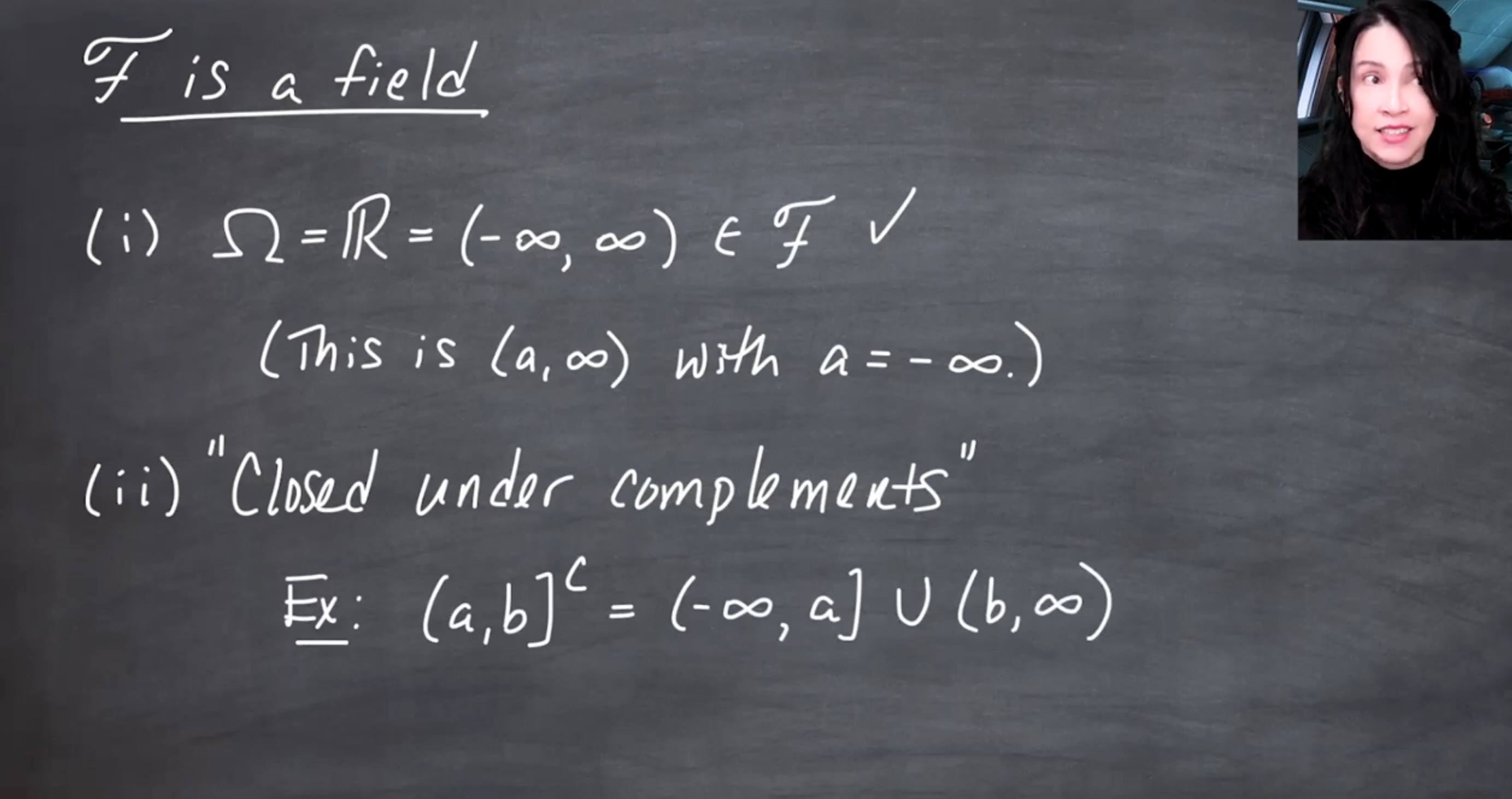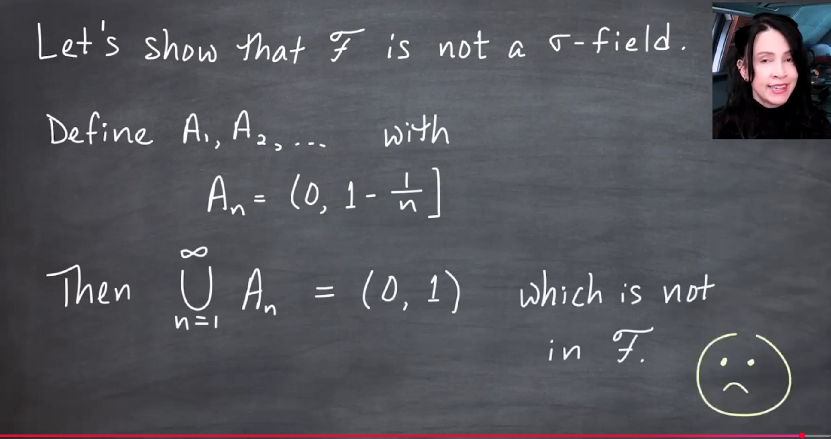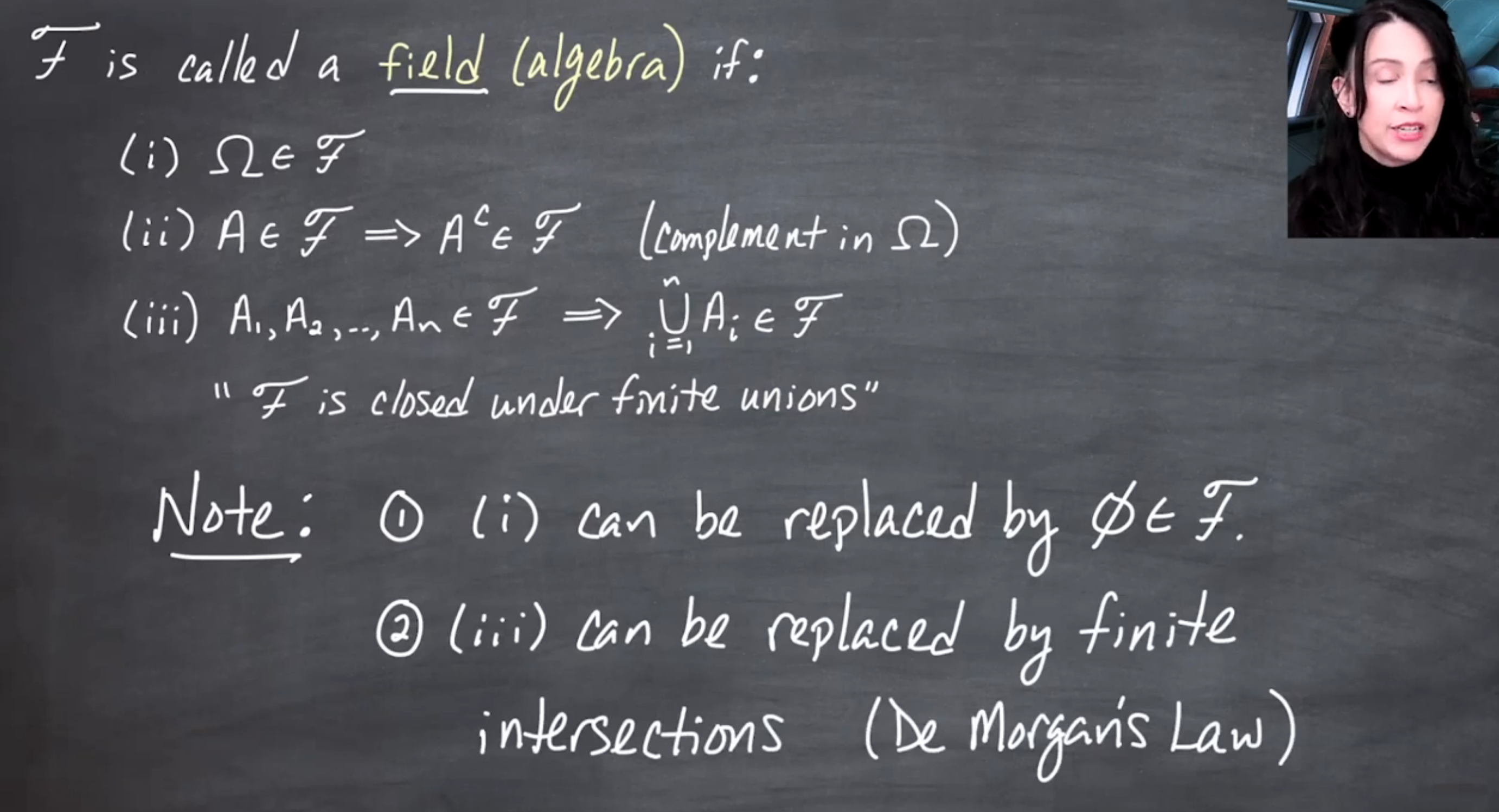 The video distinguishes \sigma-fields (or \sigma-algebras) from fields
